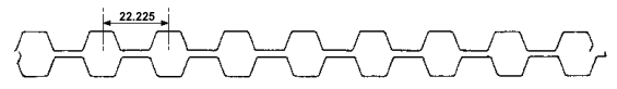 This is a double-sided XH pitch timing belt, with a central glass fibre cord helically wound, for tensile strength, and nylon fabric facings on the wear surfaces for wear resistance.